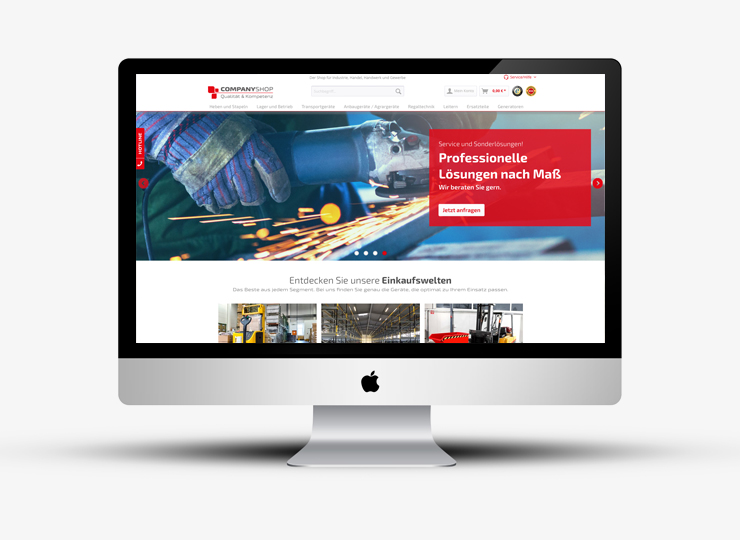 Shopware Online-Shop für Gabelstapler, Lagertechnik und Betriebsausstattung.